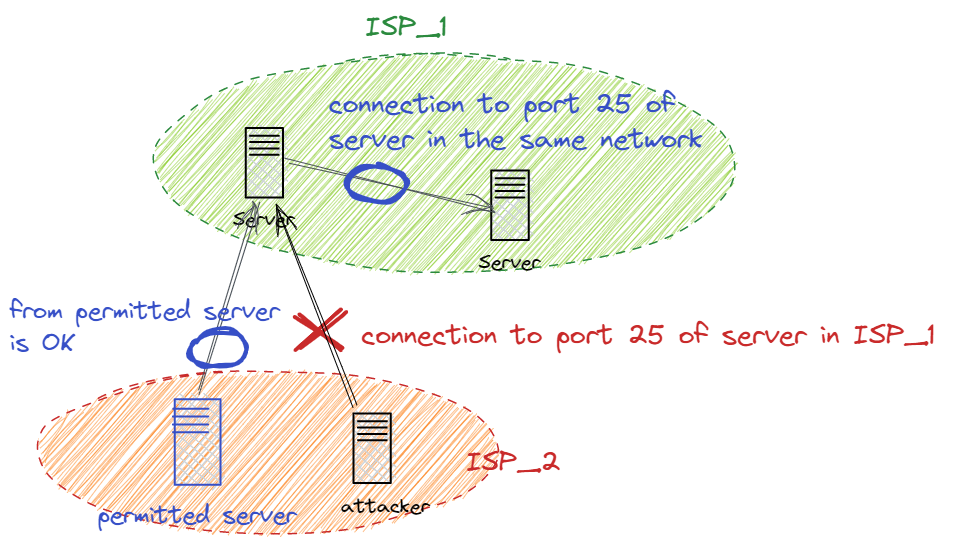 主にスパムメールなどの踏み台にされることを、メールサーバーが乗っ取られると表現しています。 SMTP には、ユーザー認証の仕組みがないため、メールサーバーが不正に利用されてしまうということを説明しました。これから説明するのは、どのようにして外からの接続を調査して、関係ないユーザーからのメール送信を防ぐかです。
